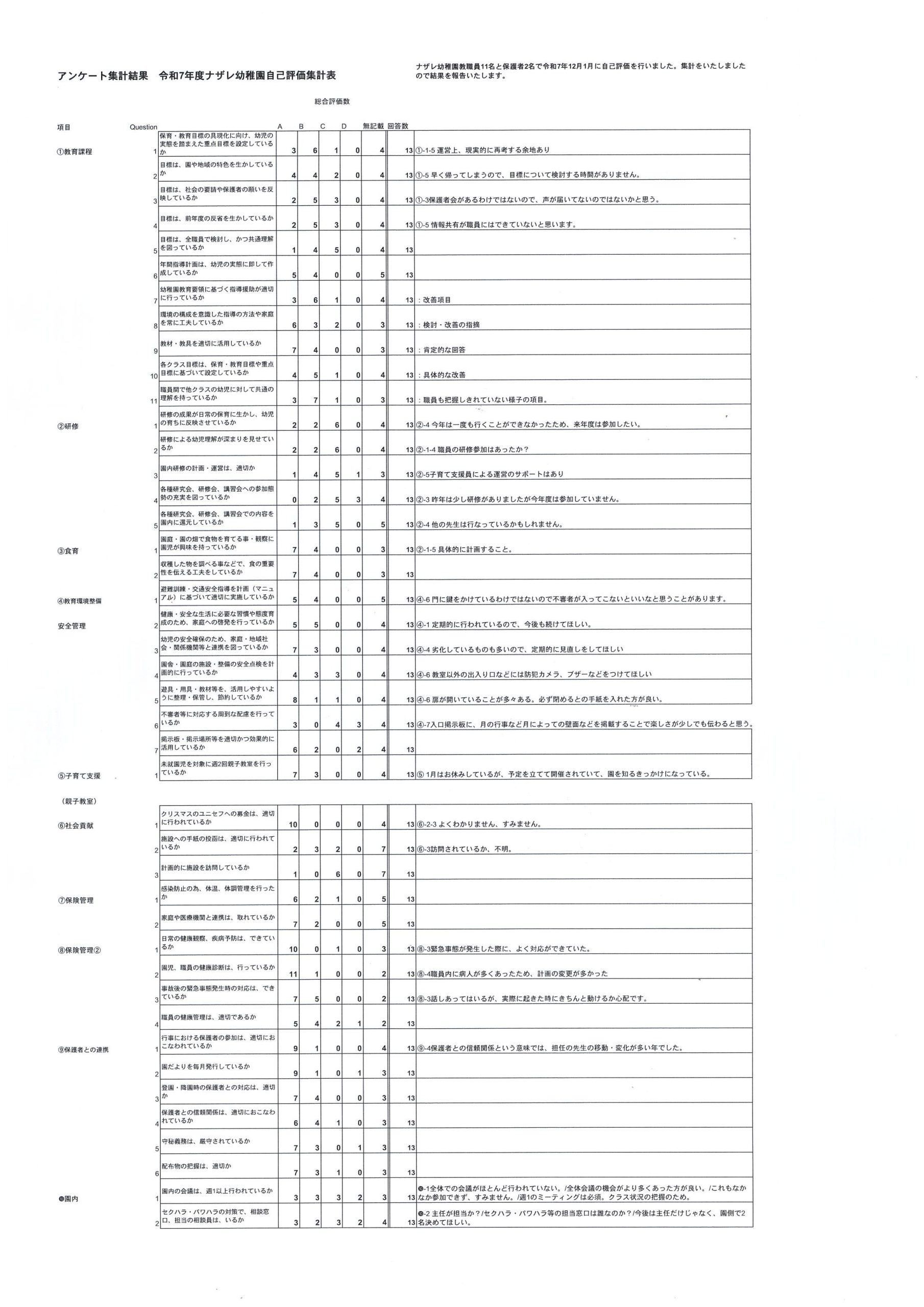 令和7年度ナザレ幼稚園自己評価報告